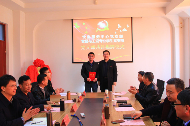 饮食服务中心党支部高坤与食品和工设员工党支部张佳签署共建协议书