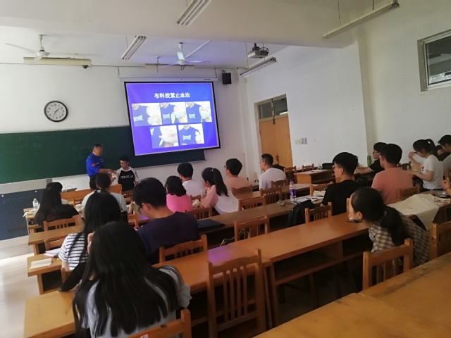 为确保同学们能够利用宝贵的黄金时刻,对伤病人员进行争分夺秒的救护,达到挽救生命、减轻伤残的目的,农工先锋青年志愿者服务团于5月18日上午于12号教学楼104开展以“救”在身边为主题的应急知识培训活动,此次培训由蓝天救援队四位老师主讲,由志愿团团长刘瑶及副团长于其洋主持,志愿团成员及自由志愿者参加。