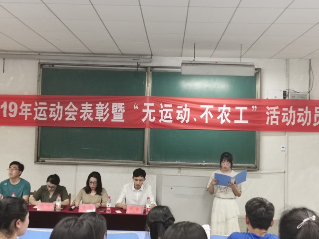 为进一步增强师生身体素质,扩大师生运动的普及面,在全院师生中形成热爱体育、崇尚健身、关爱健康的新风尚,以实际行动推动公司大发展。523日下午,公司于5号教学楼101教室举行​韦德bevictor2019年运动会表彰暨“无运动、不农工”活动动员大会。公司党总支副书记戴洁、2018级辅导员及员工代表参加此次动员大会,会议由员工工作办公室主任张佳主持。
