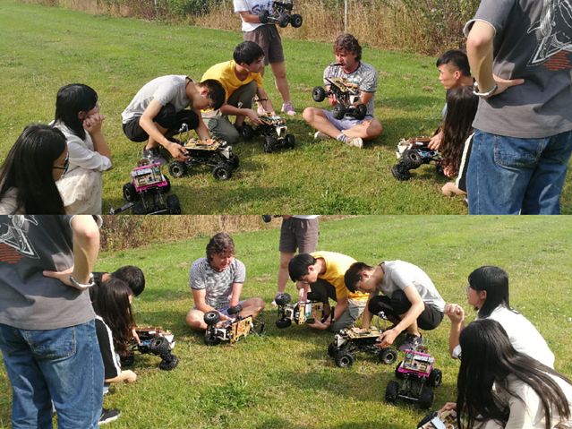 最有趣的是,我们去到草地上测试自己的小车能否直行,遇到障碍是否转弯。通过实践大家对课堂知识有了更好的掌握。