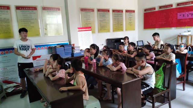 7月19日,支教课堂开课第一天,见面会之后,第一堂课教授员工们发生洪水时的自救知识。