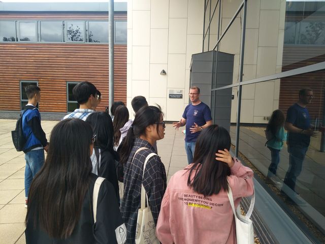 英方语言支持负责人Stephen Giles先生及其助理在帮助安置好宿舍后,带领访学团参观了哈珀亚当斯大学的餐厅、教学楼、农场和英国国家精准农业中心。Stephen Giles重点介绍了本次“哈珀亚当斯访学”项目的主要教学地点、公司历史及著名建筑,同学们对哈伯亚当斯大学的教学环境有了初步认识,并对课程学习内容等问题进行了提问交流。