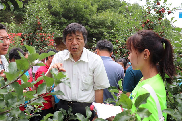 在山东省果树研究所和栖霞市农业局的大力支持下,7月20日上午,由山东果树研究所研究员李慧峰、栖霞市农业局局长程显华带队,日本教授伴野洁、社长永田荣一,沈阳农业大学教授吕德国、秦嗣军组成中日果树专家访问组,来到唐家泊镇肖家夼村苹果示范基地现场进行苹果种植指导,公司“霞光永栖”暑期社会实践团队全程协同此次活动的举行。