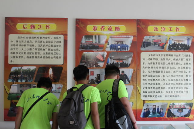 随着参观的进行,同学们最终走到西昌森林消防队的荣誉室,一个英雄用鲜血和忠诚铸就旗帜,透过这张张荣誉同学们看到的全都是消防官兵们忠诚可靠、赴汤蹈火、服务人民、竭诚奉献的伟大精神,其中同学们看到一张张感人肺腑的照片:一个官兵赤裸着上身,睡在了地板上。笔笔宝贵的照片让同学们感慨万千。由于一些社会方面的因素,同学们并不能将更多的照片记录下来,为消防官兵做更好的宣传,这也是遗憾之一。参观结束后,同学们对西昌消防中队表示了深深的敬意和感谢。