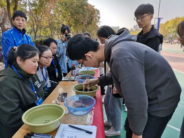 此次活动分为户外和室内两个场地,设置了放飞梦想、墨中夹弹珠、疯狂颠足球等单人项目和二十字接力、十人九足和不倒森林等团体项目共计二十六项活动。同学们踊跃参与,现场氛围紧张、激烈又不失趣味性。“墨中加弹珠”比赛中同学们屏气凝神,用筷子在墨水中寻找弹珠,在规定时间内挑出弹珠最多的人就是获胜者;“疯狂跳跃”比赛中同学们在指压板上跳绳,在跳绳过程中体验刺激;在“穿针引线”项目中,同学们细心认真,将线头穿过针眼,极大考验着同学们的耐心;在“十人九足”团队比赛中,同学们发扬团队精神,用自己的付出换来团队的胜利。