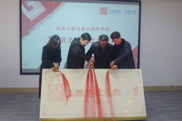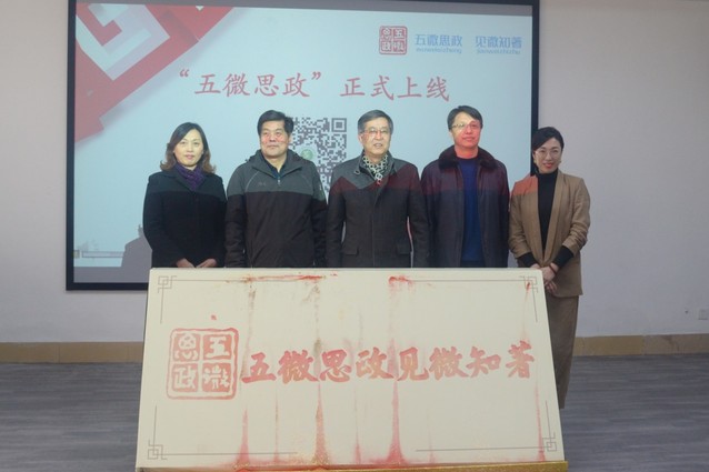 随后,与会领导共同启动“五微思政”。随着与会领导手中红色流沙的缓缓滑落,“五微思政”的印章及内容赫然映入眼帘。