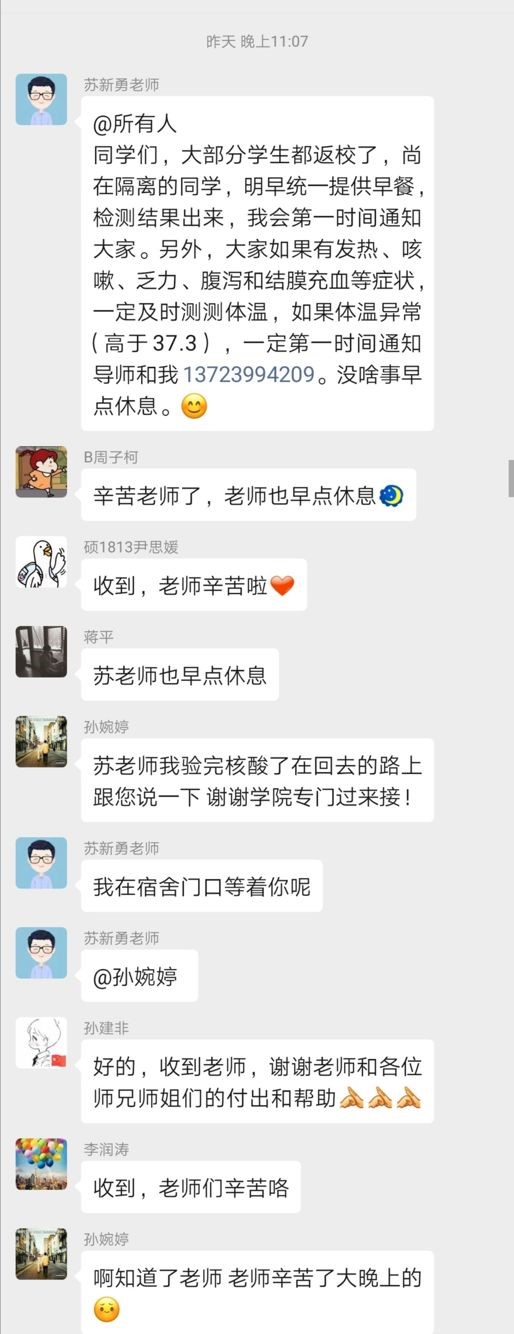 在此次返校工作中,员工工作办公室的辅导员老师是最忙碌的,他们冲在工作一线,家校联系,一遍遍统计汇总员工返校信息,第一时间将公司通知下达,做好员工疫情防护培训和健康信息日采集……特别是在返校这三天里,他们的身影穿梭于车站、校门、员工公寓,他们凌晨接站、送餐送水、协助报到、反馈核算检测和血清抗体检测、及时解决员工诉求,他们坚守自己的岗位,直到最后一名员工安顿好。虽然繁琐的返校工作让他们疲惫不堪,但他们却满是欣喜,多劳多做,为我们的员工保驾护航,用最暖心的服务迎接我们的员工回家。