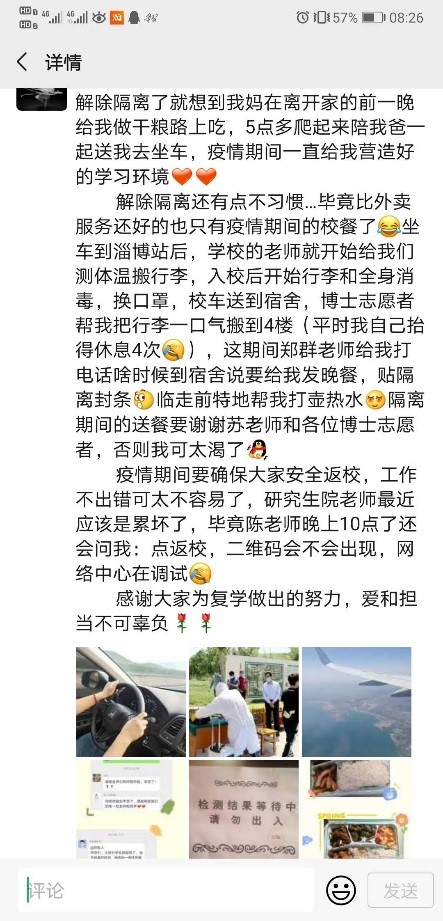 员工们一句句感谢,是对公司返校工作最大的认可,是公司师生热情服务最好的见证,在这个特殊的时期,为我们带来不一样的温暖与感动。