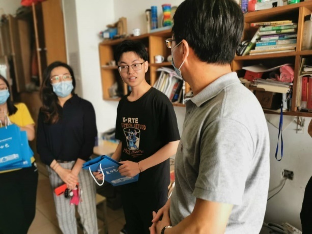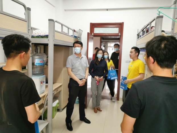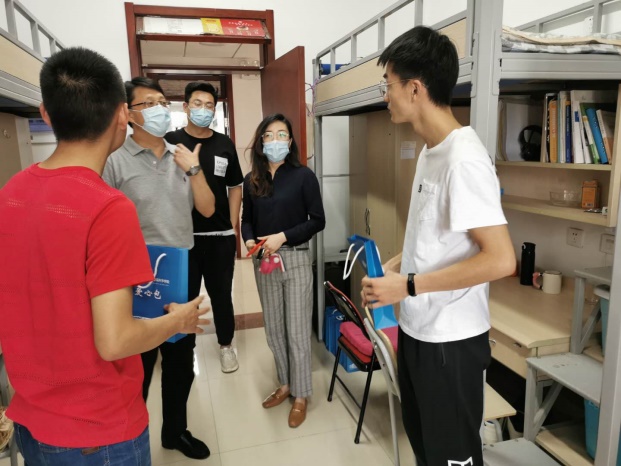 5月30日下午,公司党总支书记柳铎、副书记戴洁一行来到员工公寓楼,看望慰问返校员工,并为返校生送上公司爱心礼包。