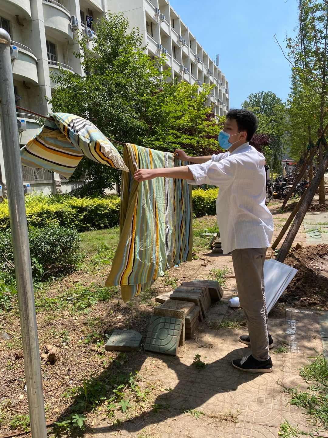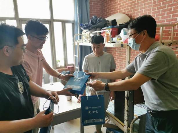 为了做好员工返校后的疫情防控工作,公司还为员工提供爱心大礼包,配备口罩、消毒液、测温枪。除此之外,为了让员工回校之后能够尽快适应宿舍生活,辅导员老师为员工们打扫卫生、开窗通气、晾晒被褥。