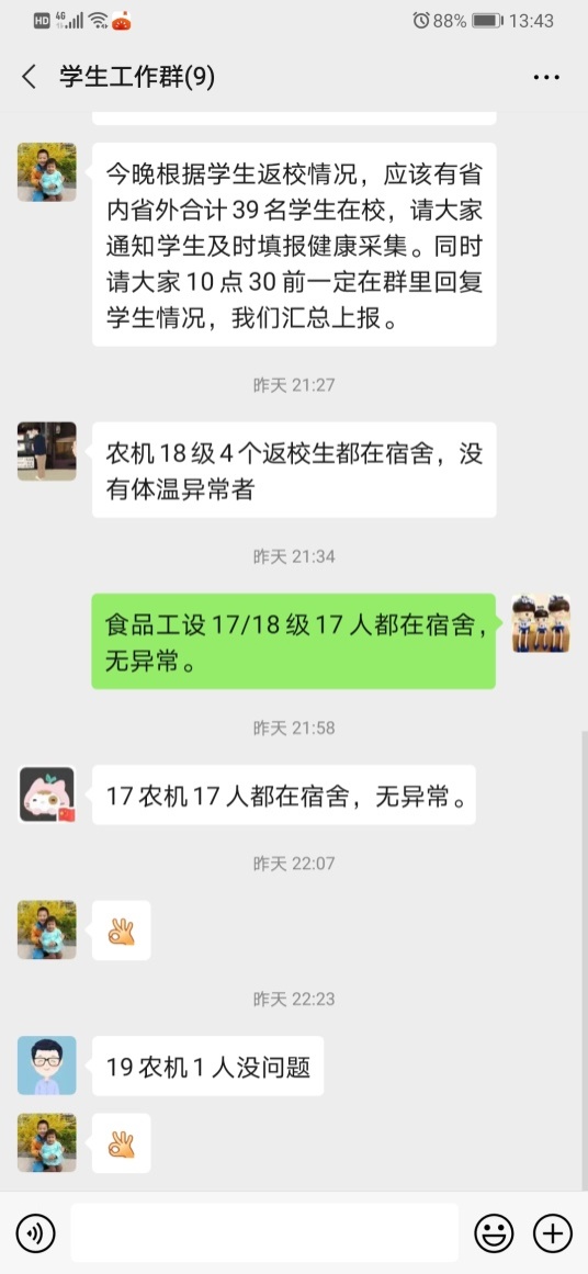 针对返校生,严格遵守体温检测报送要求。每日早晨8:00前、中午12:00前、晚上20:00前进行三次体温测量。严格遵守公寓管理规定,每晚安排专人进行查寝报送,保障员工在校安全。
