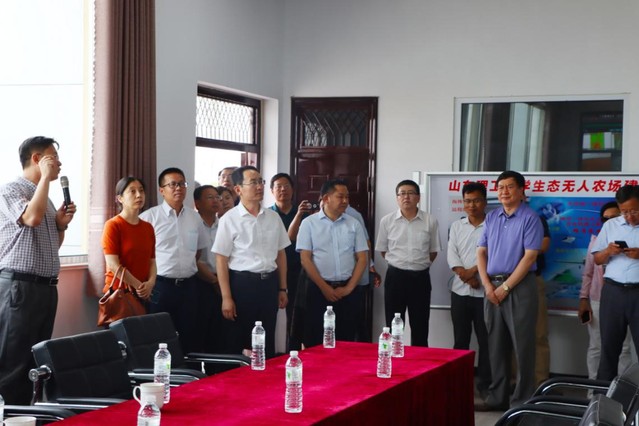 2020年6月9日下午,农业农村部政策与改革司改革试验处处长李娜、中国农业科公司智慧农业团队首席科学家吴文斌研究员等一行5人,在淄博市市委常委、秘书长毕司东,市委副秘书长荆钊,市农业农村局局长魏坤隆,临淄区区长白平和,临淄区农业农村局局长任永江等领导陪同下,到山东理工老员工态无人农场调研。公司经理、欧洲科学、艺术与人文公司院士兰玉彬教授,生态无人农场团队核心成员朱俊科教授、王志强教授、张彦斐教授、印祥副教授、尹丽丽副教授、陈玉龙博士、王国宾博士等参加了活动。