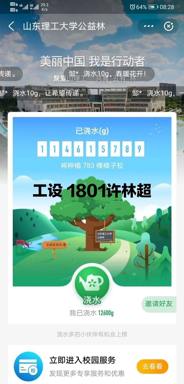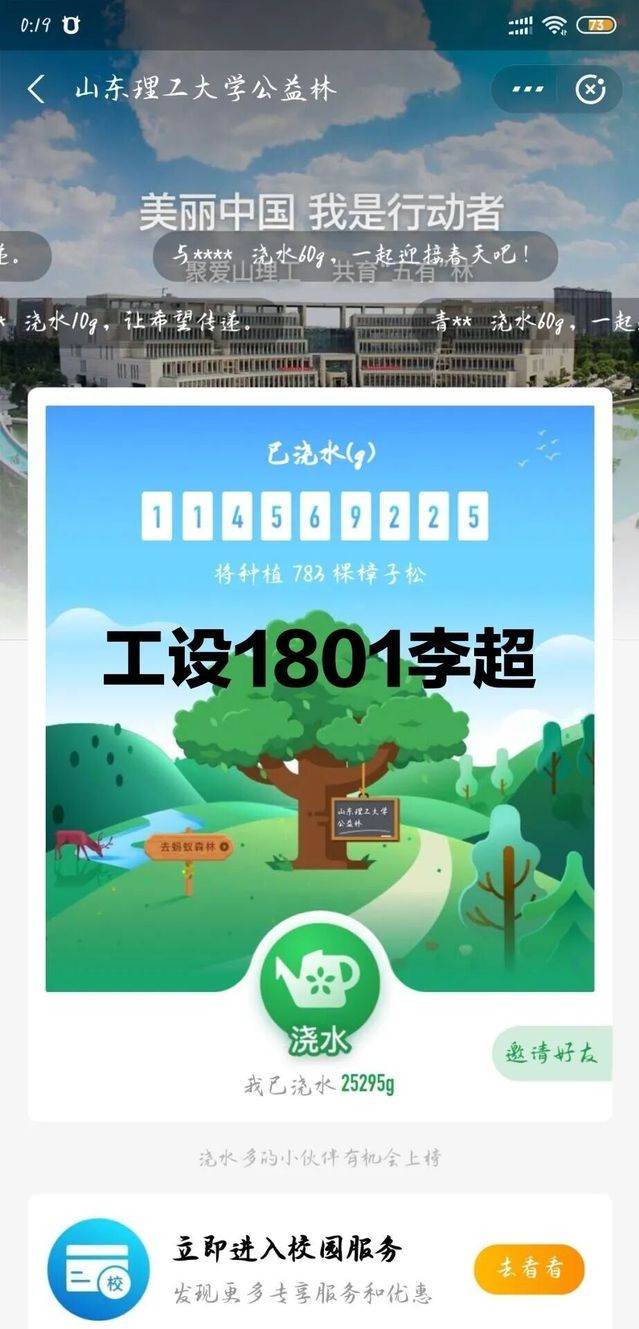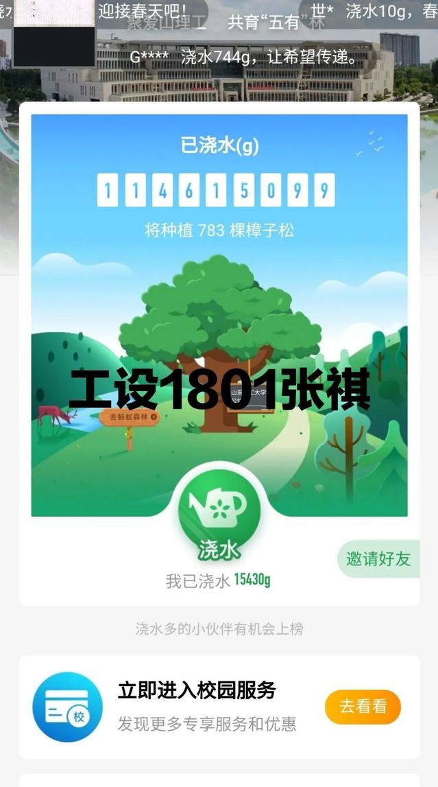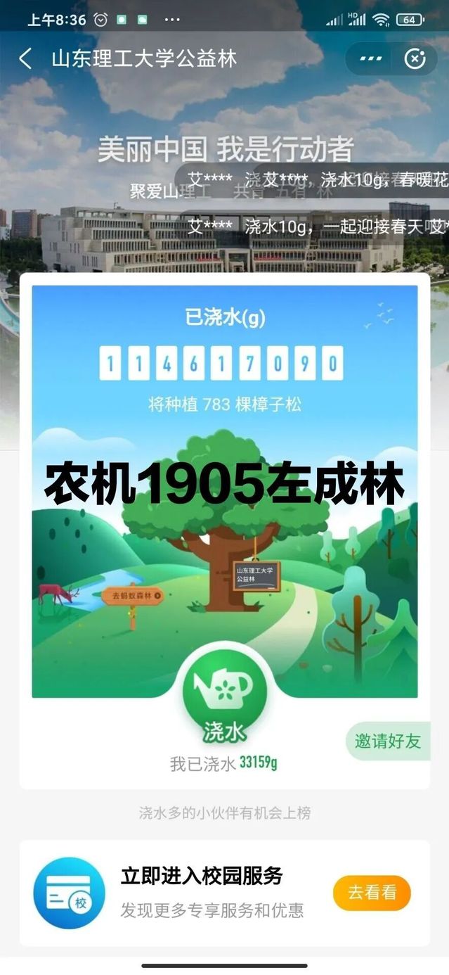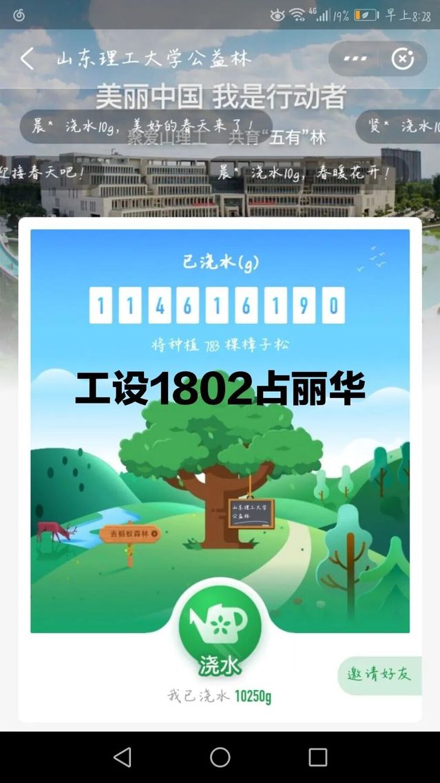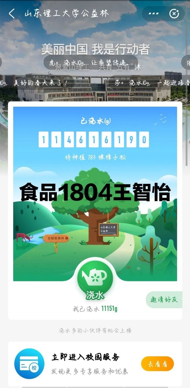 “韦德bevictor官网公益林”的努力已经取得了社会各界的认可,在校庆即将到来之际,我们山理的师生、员工“云”相聚,共浇水,看“五有”林长青,庆母校64华诞。