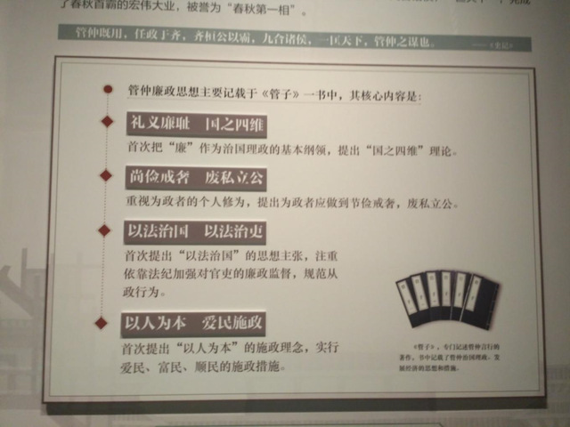 在宣讲员的引领下,全体教师通过雕塑、图片、实物等多种形式,系统学习了齐文化廉政教育基地关于姜太公、管仲、晏婴、齐威王、齐宣王以及稷下学宫代表人物的廉政思想,内容丰富、特色鲜明,“廉为政本、勤俭持政、以人为本、以法治国”等齐文化廉政思想,对于提高党员干部的廉洁自律意识与拒腐防变能力具有重要意义。