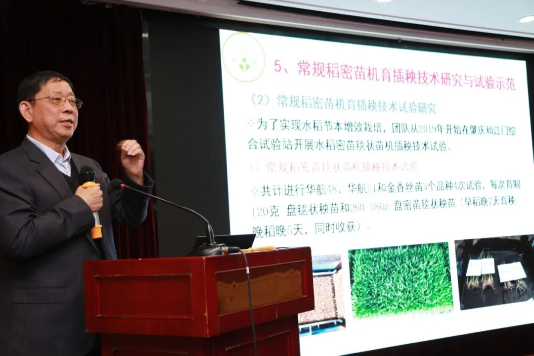 马旭教授以“水稻精准插秧装备研发与新技术的推广应用”为题,报告从影响我国水稻种植机械化发展的因素、杂交稻机械化育插秧技术研究与推广应用、固/液肥侧深施与同步插秧技术研究与推广应用和常规稻密苗机育插秧技术研究与试验示范四个方面介绍了水稻机械化育插秧技术及取得的科研成果。