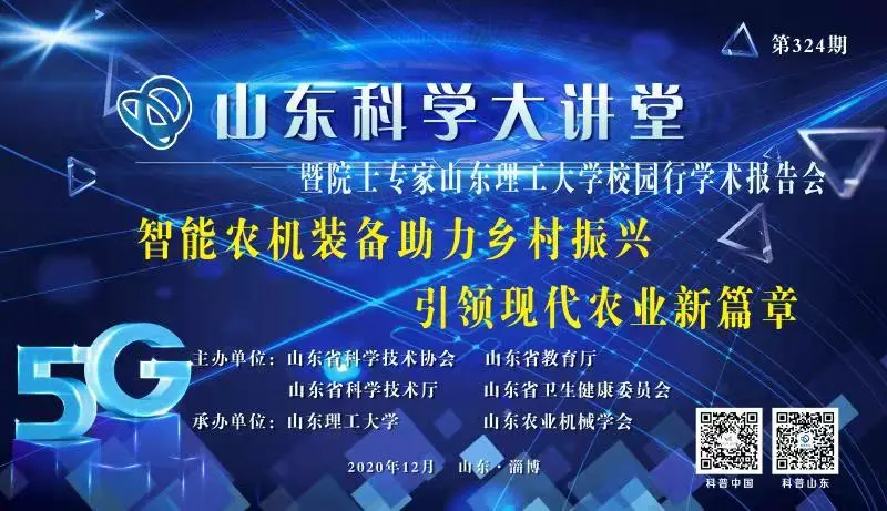 12月20日上午,第324期山东科学大讲堂暨院士专家韦德bevictor官网校园行报告会在韦德bevictor官网顺利开讲,主题是“智能农机装备助力乡村振兴 引领现代农业新篇章”。本次活动由山东省科学技术协会、山东省教育厅、山东省科学技术厅、山东省卫生健康委员会主办,山东农业机械学会和韦德bevictor官网联合承办,报告会由韦德bevictor官网农业工程与食品科学公司党总支书记杨直和山东农业大学教授张晓辉共同主持,国内行业专家学者和公司师生代表共计100余人参会。
