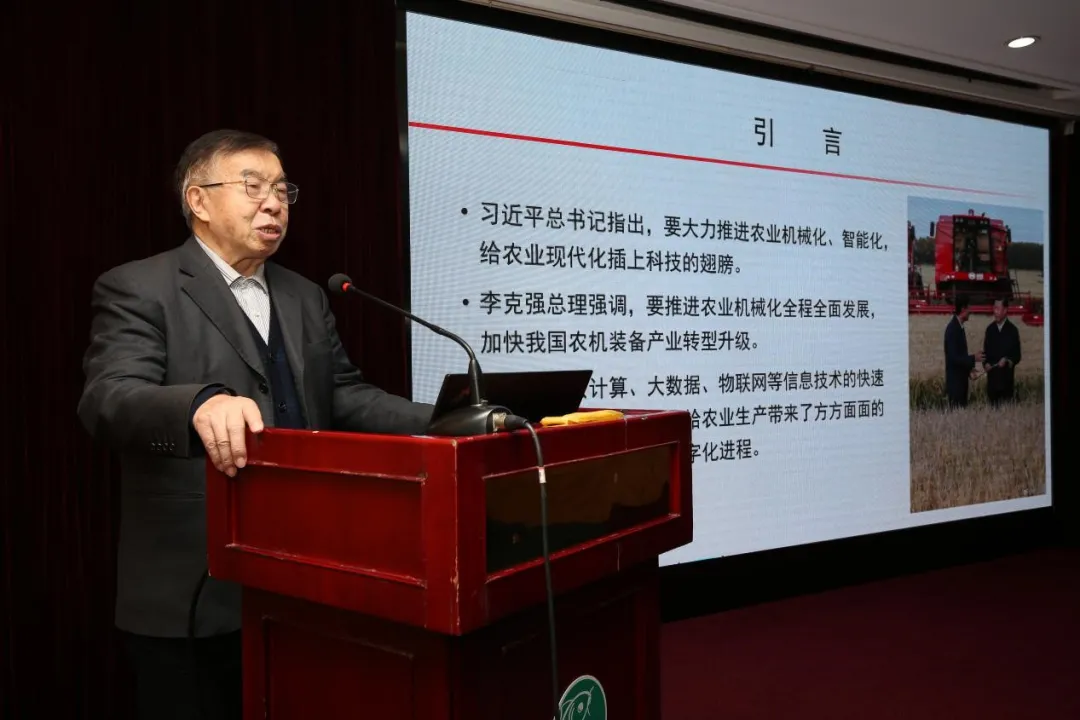 陈学庚院士以“信息技术在我国田间作业机械上的应用”为主题,介绍了信息技术在耕、种、管、收各个环节上的应用,并以新疆棉花全程机械化为案例,重点讲述了无人导航技术在棉花播种、智能化技术在田间管理、信息技术在棉花收获等环节的应用。
