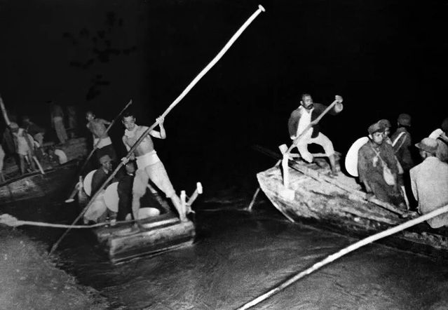 1947年6月30日,刘伯承、邓小平率晋冀鲁豫野战军主力12万余人,一举突破国民党军黄河防线。图为刘邓大军夜渡黄河(资料照片)。新华社发