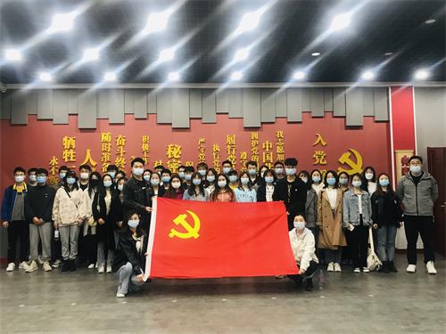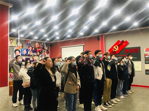 活动伊始,支部书记为员工党员佩戴党徽。随后,讲解员详细地为全体党员介绍了马克思主义的诞生历史、党章的修正、党章的内容等方面知识,并一一讲解了雷锋、焦裕禄、黄大年、廖俊波等优秀党员的事迹,激励全体党员要努力向榜样看齐,学习榜样的精神。在讲解员的带领下,全体党员观看了视频《我宣誓》,重温入党誓词,重燃入党热情。在入党誓词墙前,全体员工党员举起右拳,庄严地宣誓。一阵阵铿锵有力的宣誓声,既展现出了青年学子的朝气蓬勃,也彰显了全体员工党员对党的忠诚和拥护。