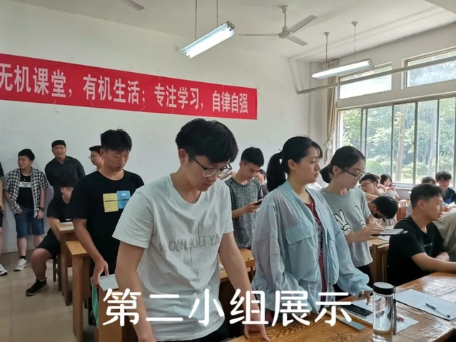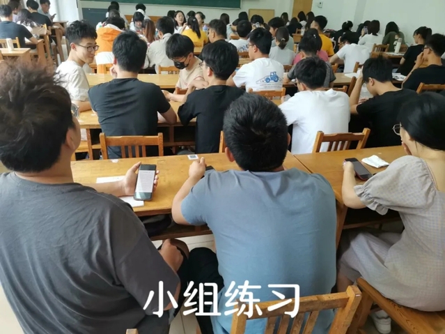 领唱结束后,活动进入第二个环节,小组内自行进行自由练习,一段时间后,主持人刘保月通过签到名单进行抽查,检验小组练习成果,一共抽了四个小组进行展示。