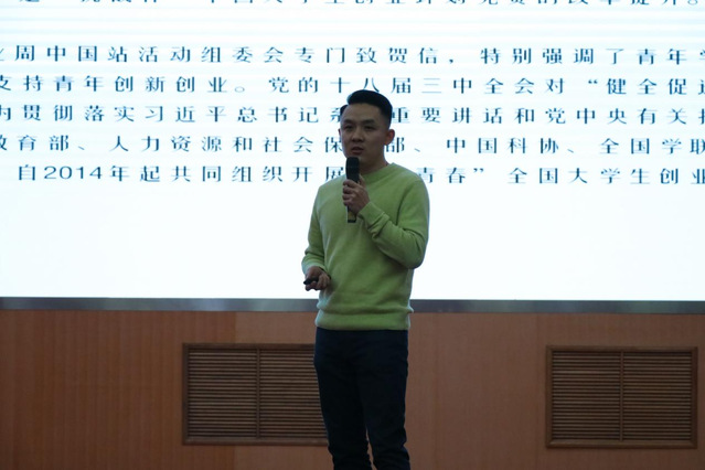 肖洋对挑战杯”全国老员工课外学术科技作品竞赛、全国老员工创业大赛及中国“互联网+”老员工创新创业大赛三大科技创新比赛进行简要概述,重点介绍具体报名时间和比赛流程。着重讲述参加各种科技创新比赛的必备条件,强调团队各专业同学合作的重要性。随后,他讲解了商业计划书的主要内容,让同学们对创新创业比赛拥有更加清晰的认识。