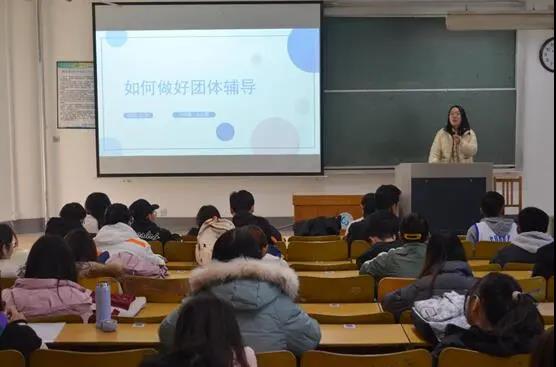 培训中,孙绪霞从团体辅导是什么、团体辅导的流程、注意事项三个方面为大家作介绍。她点明团体辅导可以增进与建立良好的人际关系,增强同学们的归属感与认同感,体验团队间的互助与互利,帮助参加者不断探索从而自我成长。同时,她表示,团体辅导活动不仅仅是“做游戏”,同学们参与感受及体验分享至关重要,不仅可以让同学们降低自卫心理,还有利于彼此认同与关注。在规划团辅活动时,前期准备要充足,保证活动顺利进行,活动过程中要照顾到每个人的情绪,激发参与者积极性。最后,史长歌为大家介绍了团辅游戏锦集,为在场的心理委员介绍了各类团体辅导游戏及作用,同时为大家推荐了《老员工朋辈心理辅导》书籍,引导同学们积极交往、朋辈互助、共同成长。