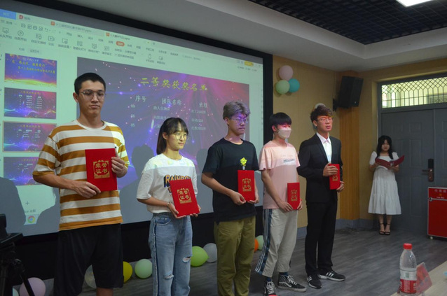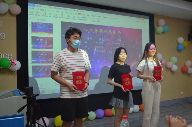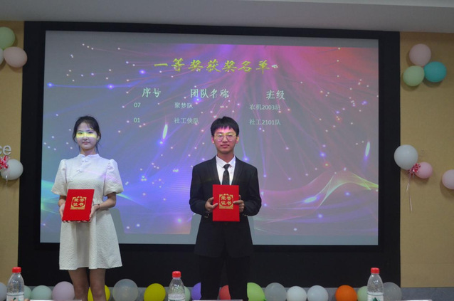 决赛分为PPT答辩和评委提问环节。答辩同学通过PPT讲解的形式向大家汇报了班级心理健康活动开展的情况与效果,并用视频展示了活动的精彩瞬间。社工侠队围绕 “不卑不亢,奋勉向上,青春如火,超越自我”的口号,秉持着社工尊重、助人、善良、关怀的原则开展了班级心理健康活动,分别通过你比我猜、趣味踩气球、欢乐撕名牌、心愿漂流瓶四个活动,帮助同学们释放压力,保持乐观向上的情绪,让班级的凝聚力逐步提升。聚梦队以“‘疫’路同行,你我相伴”为主题,通过五毛和一块、可怜的小猫、无敌风火轮等一系列活动,诠释了互相陪伴的温暖与感动,引导同学们对未来充满信心和希望。此外,六氯环己烷队等其他8支参赛队伍分别展示出各自团队活动的风采。比赛过程中,同学们认真观看,答辩同学准备充分,体现出各班级健康、乐观、团结、向上的心态。在评委提问环节,参赛者自信满满,机智作答,展现了班级心理健康活动背后的温暖故事,出色的表现赢得了评委老师和观众们的阵阵掌声。最终,比赛共选出一等奖两名、二等奖三名和三等奖五名。评委老师为获奖班级颁发证书,并合影留念。