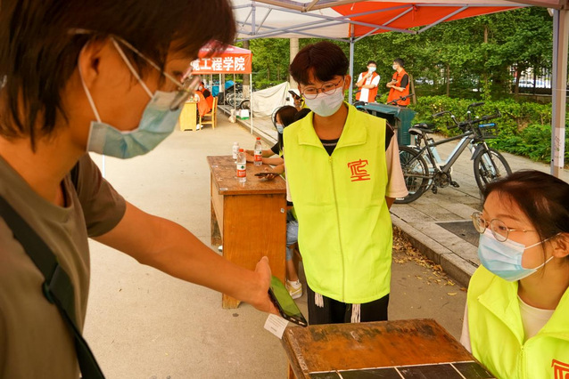 宿舍楼内,暖心服务。返校员工入校后第一时间完成核酸检测,入住员工公寓。辅导员和志愿者帮助返校同学搬运行李,当起了“运输工”,提运的不仅仅是沉甸甸的行李,更是传递的暖洋洋的爱。