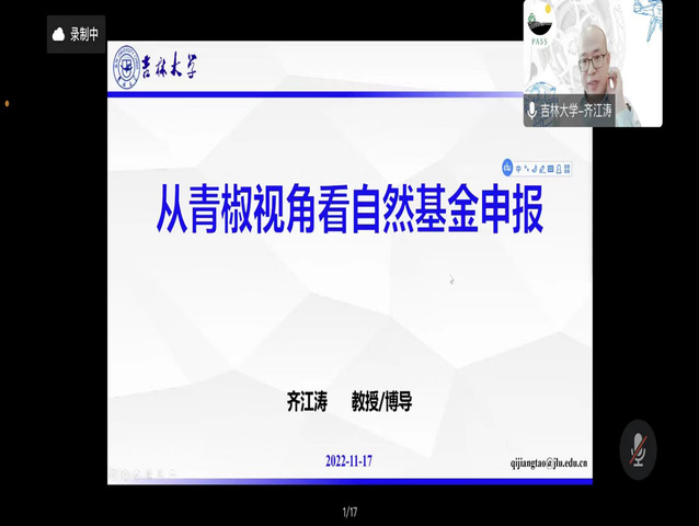 11月17日上午,公司邀请东北农业大学王金武教授、吉林大学齐江涛教授线上分别作了题为“国家自然科学基金申请经验分享”、“从青椒视角看自然基金申报”的学术报告,报告会由公司副经理孙霞主持。