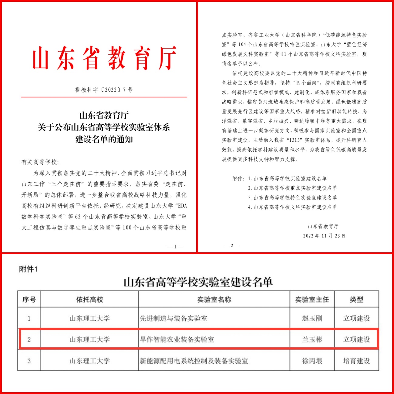 据山东省教育厅公布,公司近期申报的山东省高等公司实验室——旱作智能农业装备实验室获批立项建设。