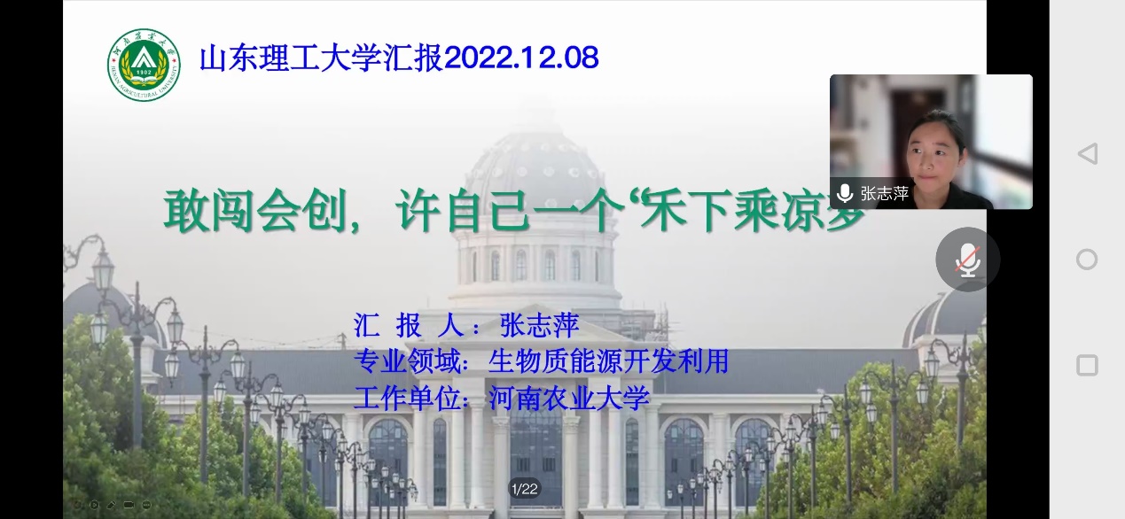 12月8日上午,公司邀请中国农业大学刘志丹教授、河南农业大学张志萍教授线上分别作了题为《碳中和视野下种养结合系统:基于水热转化的新愿景》、《敢闯会创,许自己一个“禾下乘凉梦”》的学术报告,报告会由公司副经理孙霞主持。