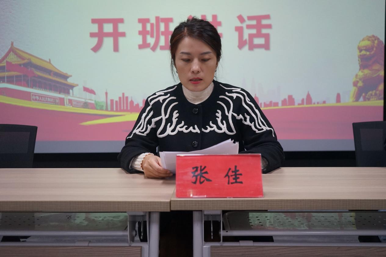 最后,张佳为“领雁”团校做开班致辞,并提四点建议和要求。一要砥砺政治品德,浇灌信仰之花,对党忠诚;二要锤炼过硬本领,浇灌奋斗之花,不断在实践中加强自身业务和水平;三要强化宗旨意识,浇灌为民之花,做服务者;四要弘扬模范精神,浇灌榜样之花,成为班级的领头羊。她强调,青年应该独立建设,大有作为,提高忧患意识,强化宗旨仪式。开班仪式在团歌声结束。