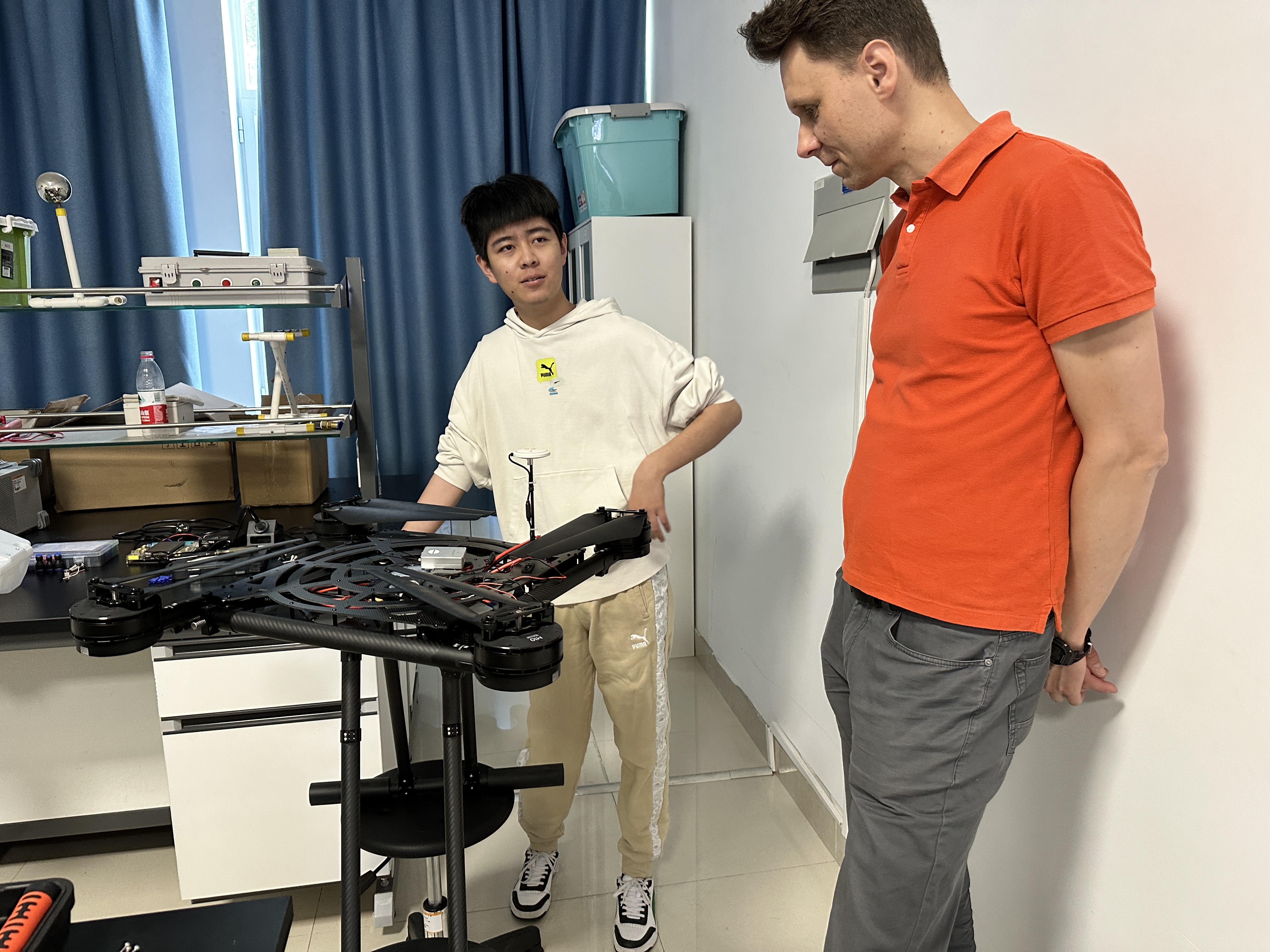 23日,公司中英智能农业联合研究中心和智慧农场技术国际合作实验室的成员与斯文教授在公司的生态无人农场展开交流和田间试验。在交流活动中,实验室成员展示了兰玉彬教授团队研发的智慧云大脑平台、农机远程控制、无人机遥感以及无人机施药等技术,并详细演示了这些技术的原理、功能和应用场景,并对相关的试验设备性能进行了实地测试。斯文教授与实验室成员就技术细节进行了深入的讨论和交流,表示高度赞赏,尤其对农业无人机相关技术的研发与应用表现出极高的兴趣。