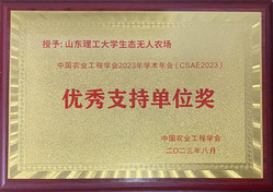 团队王十周教授、赵静副教授、伊丽丽副教授、陈玉龙副教授、赵德楠博士研究生参加年会。在年会农业航空分会场,伊丽丽和陈玉龙代表团队做了“SDUT X8-1型大载荷变量喷施无人机的研究”学术报告,赵德楠做了“基于无人机的静电喷雾技术研究与思考”学术报告,赵德楠获得“员工优秀报告奖”。山东理工老员工态无人农场研究院同时参展此次年会,并获得“优秀支持单位奖”。
