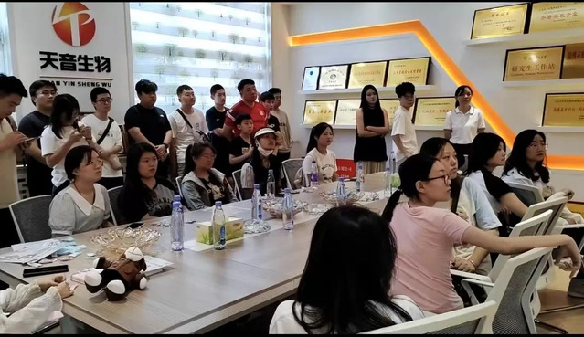 两家企业对公司师生的到访表示欢迎。在天音生物科技有限公司,工作人员向师生们详细介绍了企业的发展历程、主营业务、以及在行业发展方面取得的成绩。在得益乳业,师生在工作人员的带领下参观了企业的办公场地和生产车间,参观学习了部分产品的研发过程和全新生产工艺。
