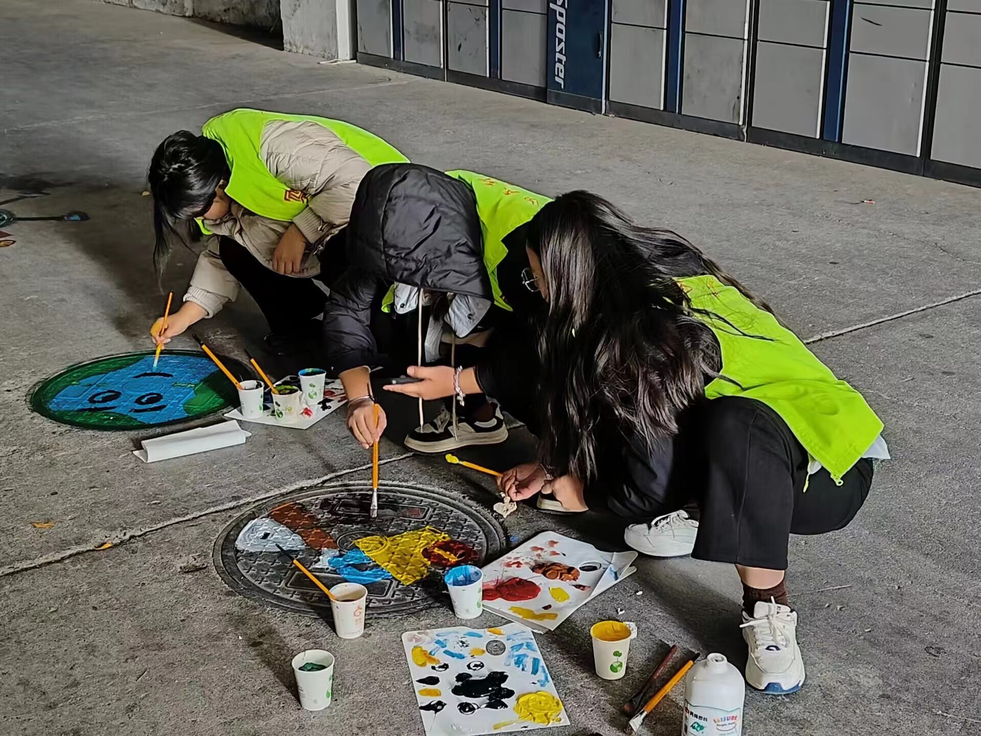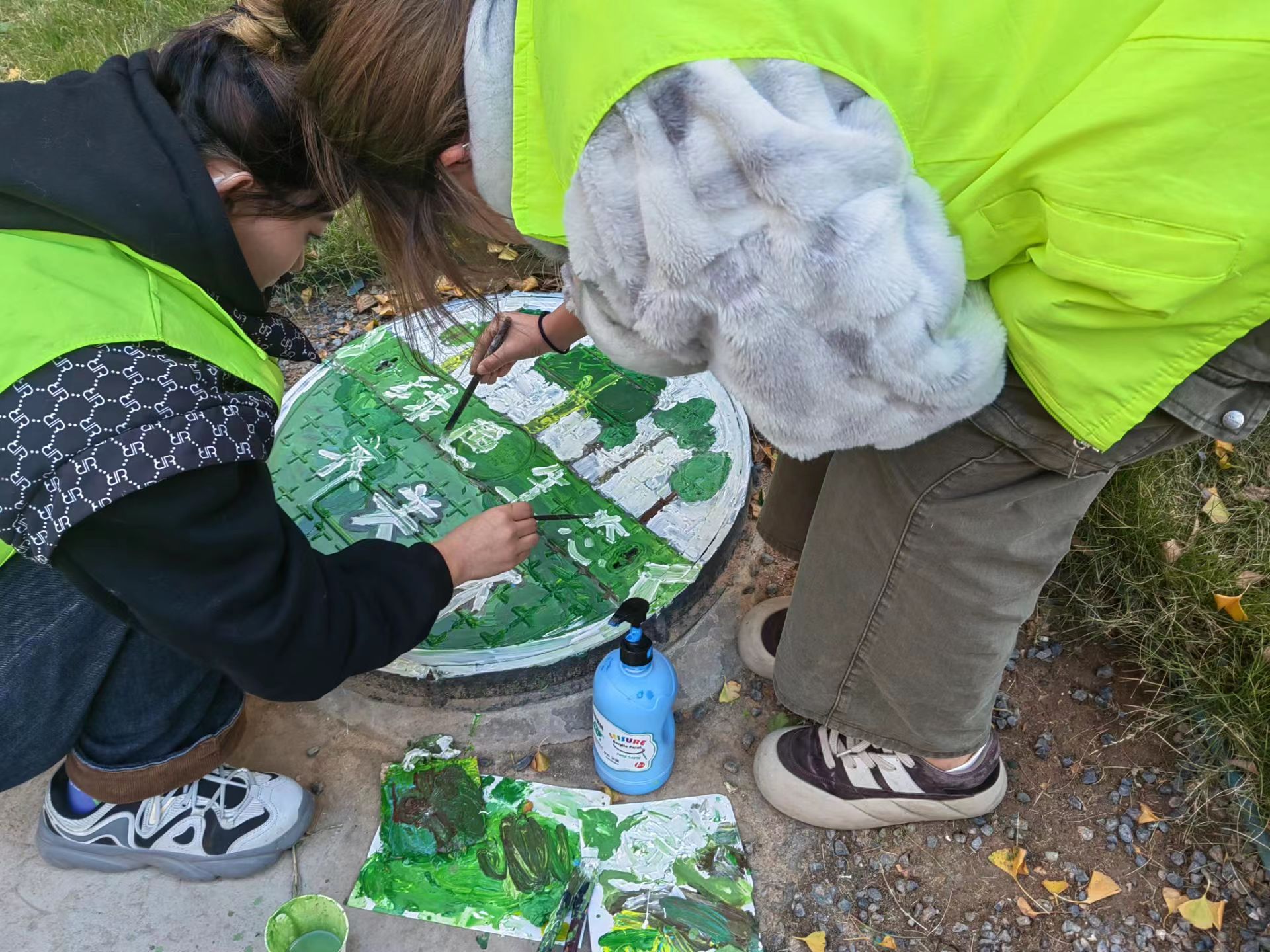 参与此次活动的40名员工前往紫园社区各个地点绘制井盖。同学们挥洒着手中的画笔,将原本冷冰冰、千篇一律的灰井盖变成了色彩斑斓的“景”盖。在同学们的妙笔巧手下,井盖都穿上了漂亮的“花衣”,让原本无人关注的井盖瞬间“活”了起来,为社区增添了一份别样的色彩与活力。美化后的井盖不仅提升了整体美观度,醒目的井盖也提升了社区安全度。