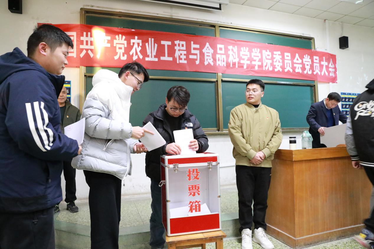 选举投票环节,全体党员严格按照选举工作要求,通过差额选举和无记名投票的方式,认真严肃填写选票,依次投入票箱。依据计票结果,最终选举付鹏、张祥彩、孙婷3名同志当选农业工程与食品科学公司党委增补委员。