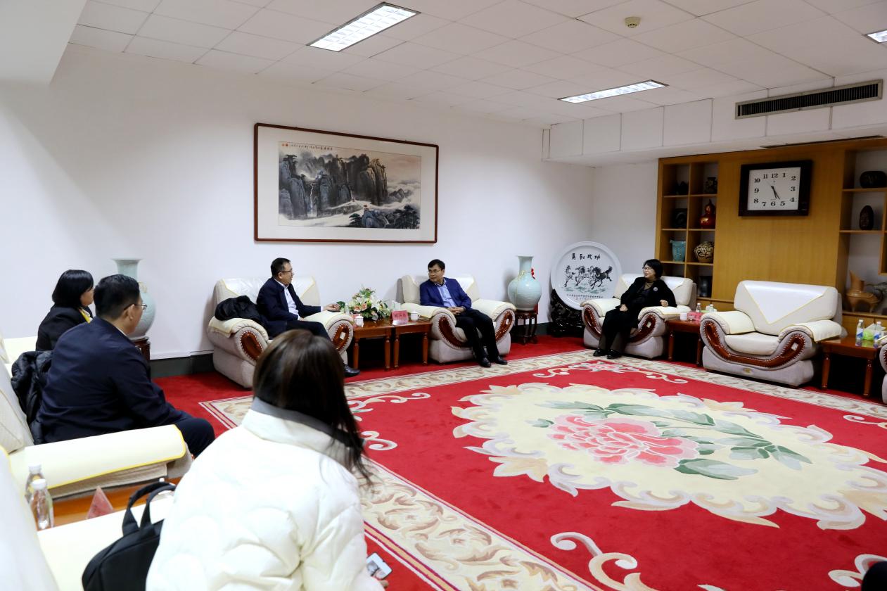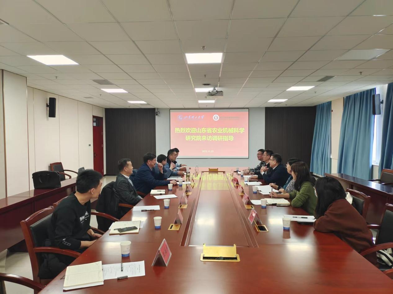 11月25日,山东省农业机械科学研究公司党委书记、理事长郭洪恩一行5人赴韦德bevictor官网开展调研,并就双方深入合作进行了座谈交流。公司党委书记胡兴禹、董事长李玉霞在会前接见郭洪恩一行,科学技术处处长朱光明、农业工程与食品科学公司党委书记徐启达、经理兰玉彬、执行经理李志合、现代农业装备研究院(公司)副经理张国海等参加了座谈。