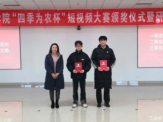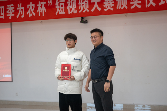 姜素锦宣读“四季为农杯”短视频大赛获奖名单,与会嘉宾们为获奖同学颁发荣誉证书。