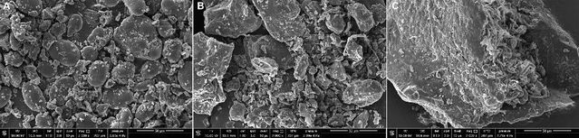 图2 豌豆(A)、挤压豌豆(B)和酶解挤压豌豆(C)的扫描电镜图