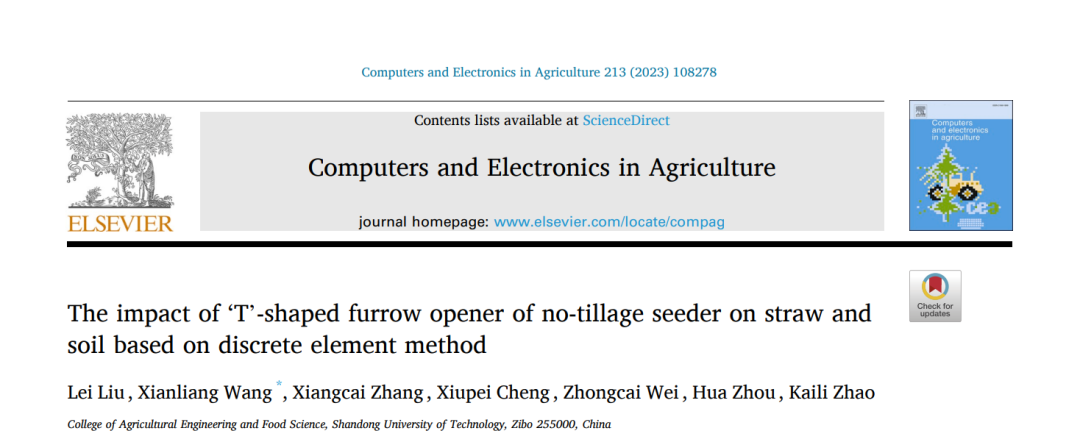 研究成果二:“The Impact of ‘T’-Shaped Furrow Opener of No-Tillage Seeder on Straw and Soil Based on Discrete Element Method”。