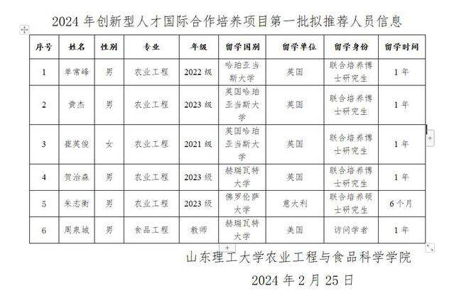根据《关于做好2024年创新型人才国际合作培养项目第一批人员申报工作的通知》(留金美〔2023〕1号)要求,结合公司实际,遵循“公开、公平、公正”的原则,经个人申请、公司初审、专家评审等环节,现将拟推荐人员名单公示,公示时间为2024年2月25日至2月29日(5个工作日)。如有异议,请在公示期内向科研与国际化办公室提交书面意见。