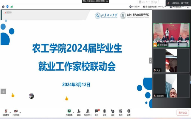 为更好地凝聚家校合力,助推毕业生更充分更高质量就业,3月12日,公司通过线上平台召开2024届毕业生就业工作家校联动会。公司党委书记徐启达、执行经理李志合、党委副书记姜素锦、副经理付鹏、国际交流合作处牟善芹、各系主任、毕业班辅导员出席会议。全体2024届毕业生及家长通过线上平台参加会议。