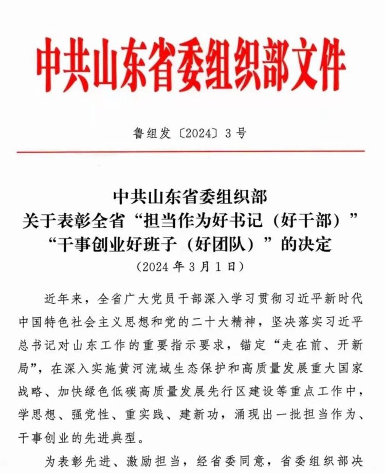 近日,山东省委组织部印发《关于表彰全省“担当作为好书记(好干部)”“干事创业好班子(好团队)”的决定》,公司农业工程与食品科学公司党委副书记、执行经理李志合荣获全省“担当作为好书记(好干部)”称号。