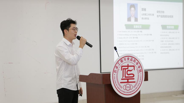 此次报告会分为上午和下午两场进行展开,报告会由李富军教授主持。上午,大连工业大学翟尚儒教授和南京农业机械化研究所王振伟博士分别作了题为“木质素基功能材料设计合成与性能研究”和“棉秆拔秆技术与装备研究进展”的学术报告。博士生郭榛、硕士生王云巧与刘磊分别作了题为“基于高光谱成像及深度学习技术的花生籽粒黄曲霉及黄曲霉毒素检测研究”、“多组学技术揭示外源亮氨酸对采后西兰花色素及核酸代谢的调控机制”和“小麦免耕播种机低扰动开沟器的设计及播种深度的调控”的学术报告。