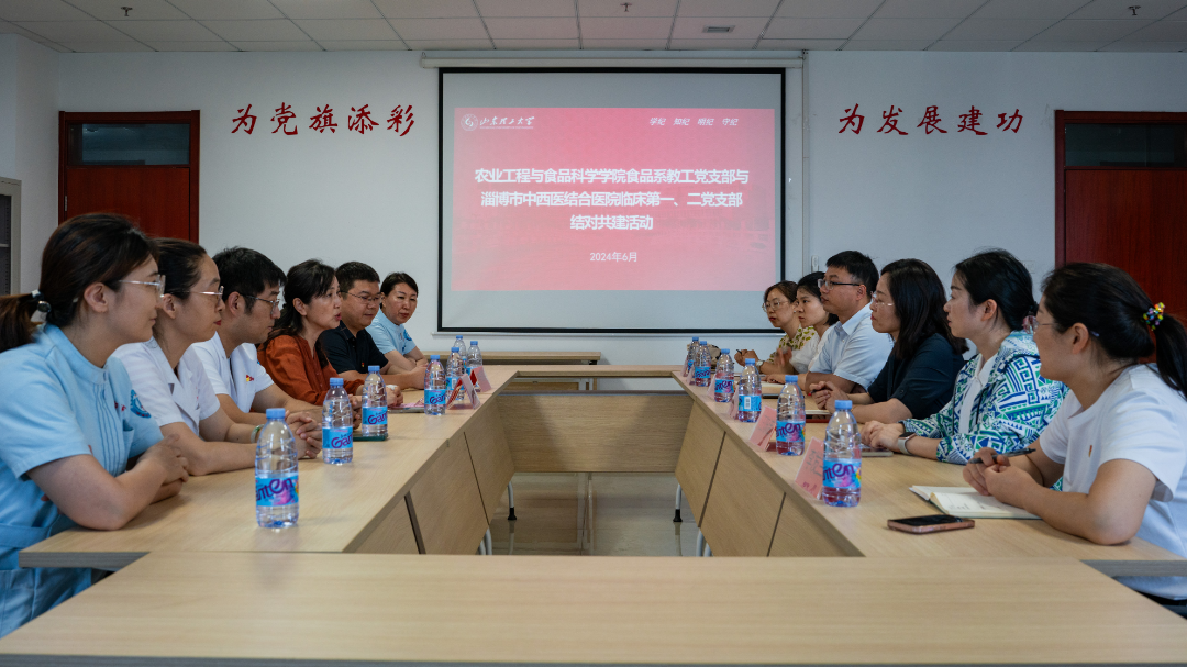 为全面落实新时代党的建设总要求,巩固和深化党纪学习教育阶段性成果,6月19日下午,公司食品系教工党支部与淄博市中西医结合医院临床一、二部开展结对共建活动。淄博市中西医结合医院副经理侯晓丽,公司党委副书记姜素锦、副经理付鹏以及双方支部党员参加活动。