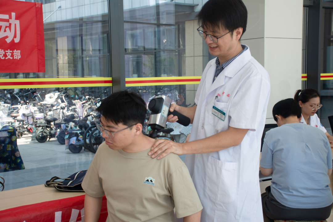 活动第三部分是淄博市中西医结合医院临床医生在六号实验楼一楼大厅面向公司师生开展义诊活动。义诊医疗团队由多科室、经验丰富、医术精湛的专家组成,广大师生积极问诊咨询。义诊医生认真看诊、推拿,耐心解答每一位问诊者的问题,并给出积极的饮食生活建议和进一步检查建议。义诊活动的成功举办得到大家的一致好评,意犹未尽的同时也不禁感叹中医传统文化的神奇与博大精深。
