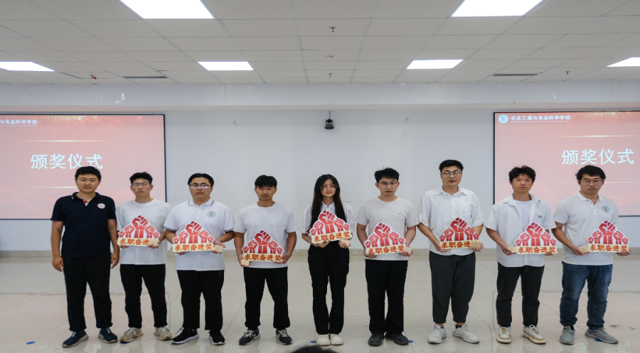 能源专业本科生导师代表张安东为获“求职奋进奖”员工代表颁奖。