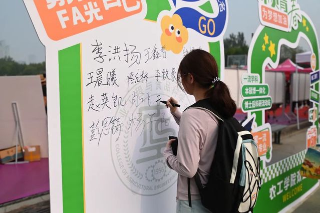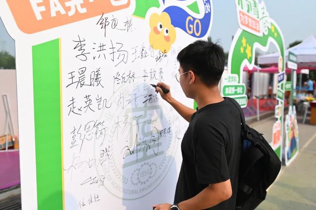 特色互动留记忆,打卡区域绽光彩。公司精心设计“你好新同学”背景墙,将专业特色元素巧妙融入其中,特色地标融入思政元素,引导新生能够坚定学农为农初心,厚植知农爱农情怀,勇担强农兴农使命。结合员工个性及兴趣,提供“不“椒”不躁、“茄”而不舍、光“芒”万丈、“萍”安喜乐等卡通蔬菜水果手举牌,营造轻松活泼氛围,记录开学新体验。设计贴有“一流学科”“国家一流本科专业”等公司关键词的打卡互动区,新生与家长在此拍照并签字留念。