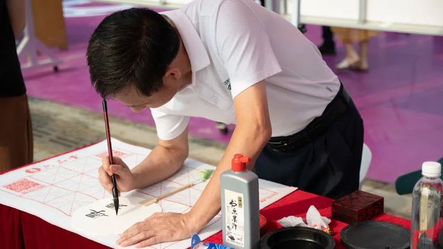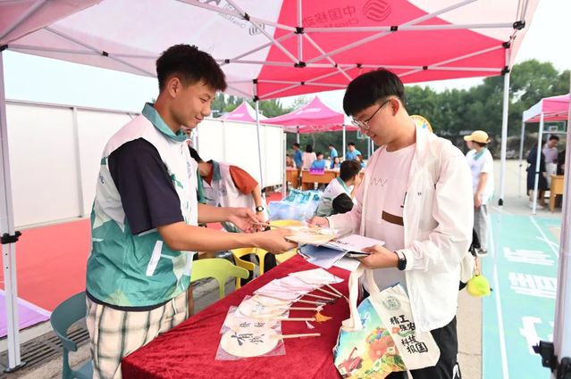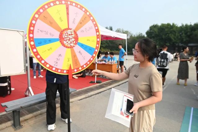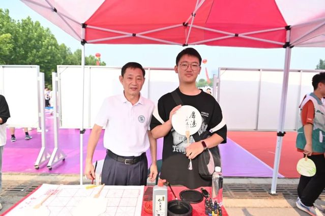 精心筹备专属礼,拉满初见氛围感。现场设置趣味十足的“幸运大转盘”,为新生送上印有公司logo的帆布包、卡套、笔记本等专属纪念品,由公司党委书记徐启达为员工现场题写祝福漆扇,更是为新生送上一份独特的惊喜,让新生们深切感受到公司的浓情关怀。